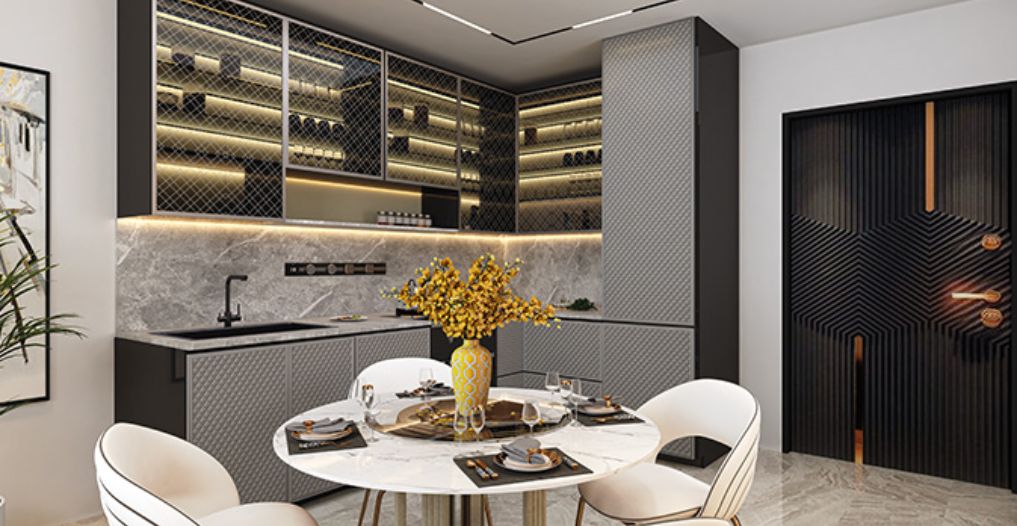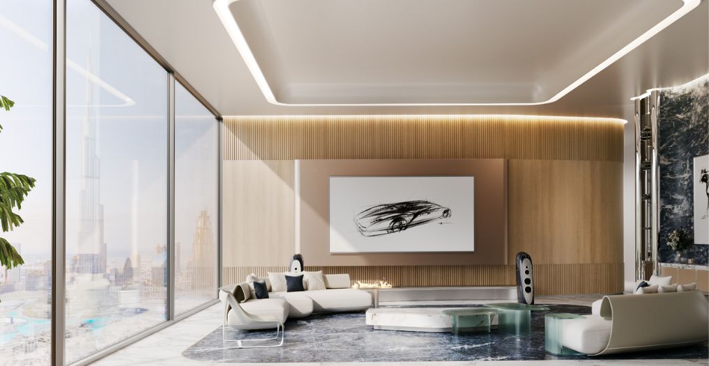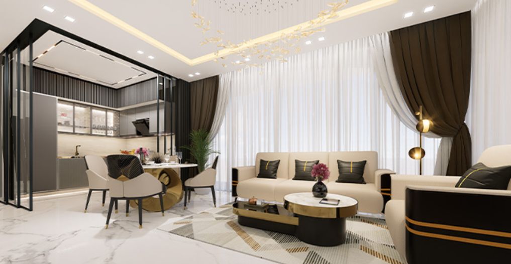 Crown Stone Properties is a luxury to the resilience, adaptability, Spacious modern villa living room with centrally placed swimming pool blending indooroutdoor.